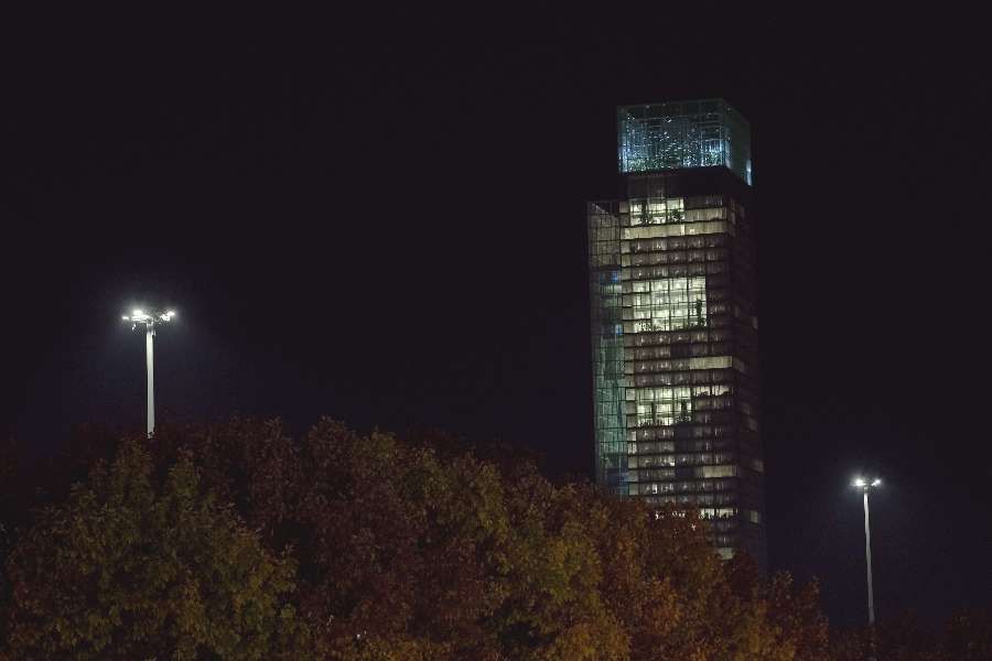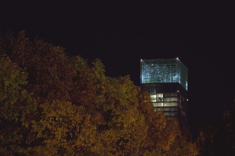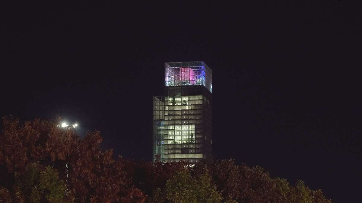 Swarms (Sciami) di Chiara Camoni è un intervento site specific realizzato sulla sommità del Grattacielo della Regione Piemonte di Torino, al 43° piano. L’opera nasce dal desiderio dell'artista di introdurre, nella rigida verticalità dell’edifico, elementi inattesi: luci da discoteca e oggetti scenografici come sfere a specchi che, muovendosi e cambiando colore, creano sciami luminosi, ruotando e danzando tutta la notte al “ritmo di una musica che non si sente”. La cima del Grattacielo si popola così di luci che richiamano il movimento di insetti, forse lucciole, creature indecifrabili e volanti. Un’immagine sospesa, accessibile solo con lo sguardo – da vicino e da lontano – visibile per chilometri, dall’ingresso sud di Torino, lungo corso Moncalieri, fino al centro e alle colline torinesi. Il Grattacielo si trasforma così in un palcoscenico in cui la natura, evocata attraverso la luce, sembra sovrastare l’uomo.